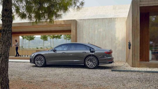 De Audi A5 is er nu ook als e-hybrid quattro. Tot 270 kW (367 pk) aan plug-in hybridevermogen – altijd gecombineerd met quattro vierwielaandrijving. De krachtige hoogvoltbatterij zorgt voor een indrukwekkend elektrisch rijbereik tot 108 km (WLTP).