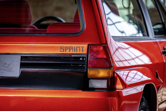 Zelfs het uiterlijk schudde het keurige imago van zich af. Brede polyester wielkasten, luchtinlaten in de flanken, horizontale lamellen achter – het mocht dan een experiment zijn, het oog wilde ook wat. Rondom zaten schijfremmen, 13 inch Quartett-velgen en een aangepaste ophanging met stuggere dempers en dikkere stabilisatorstangen zorgden ervoor dat de techniek het uiterlijk bijhield. Zelfs de portieren en motorkap kregen kunststof panelen aangemeten, alsof het prototype alvast oefende voor een carrière als homologatiespecial. Vanbinnen bleef alles verrassend ingetogen. De sportstoelen boden net wat meer steun en waren bekleed met fleurig stof. Daarnaast een aangepaste klokkenwinkel, hier en daar een lapje alcantara, een driespaaks sportstuur en – jawel – het gebrul van de boxermotor dat van achteren kwam. Dat op zichzelf veranderde de rijbeleving al drastisch. Waar een gewone Polo vóór je leefde, gromde deze Sprint achter je rug. Niet subtiel, wel karaktervol.