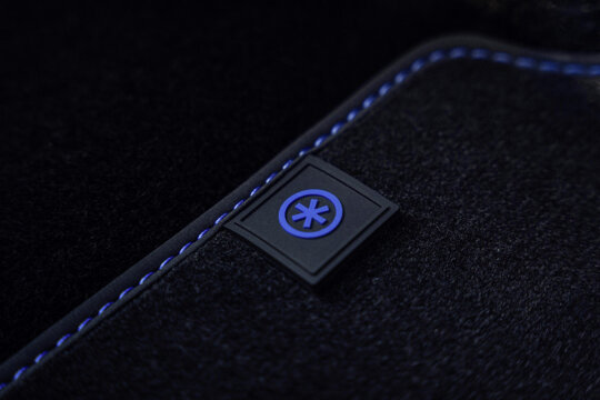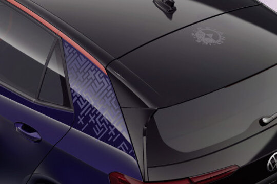 Voor dit unieke model is de Ultra Violet Metallic lak speciaal ontwikkeld: glasparels in de donkerblauwe basiskleur zorgen afhankelijk van de lichtinval voor een spectaculair verloop van blauw naar violet en zelfs zwart. Het dak heeft een subtiele, rood geanodiseerde “Flaming Red” rand en over de zijkanten loopt een transparante FIRE+ICE‑folie met geometrisch patroon. De 20 inch velgen hebben een ultraviolet, glanzende twist‑afwerking die het geheel extra dynamisch maakt, terwijl op de B‑stijl en dakspoiler het herkenbare ‘FIRE+ICE’‑logo prijkt. Binnenin zie je BOGNER‑details uit de jaren ’90 terug: de kuipstoelen zijn in twee kleuren uitgevoerd (Flaming Red links, Ice Blue rechts). Het dashboard en de vloermatten zijn voorzien van subtiele FIRE+ICE‑motieven, de RVS pedaalplaten hebben vlam‑ en sneeuwvloklogo’s, en achter de voorstoelen zijn riemen van BOGNER-tassen verwerkt.