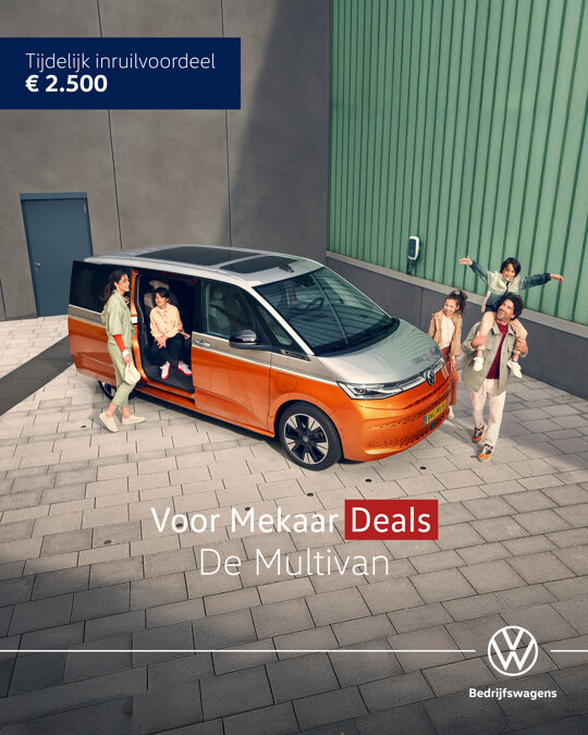 3. Het Voor Mekaar Deals inruilvoordeel van € 2.500 incl. btw is van toepassing op alle uitvoeringen van de Multivan en geldig t/m 30 september 2025. Het Voor Mekaar Deals inruilvoordeel van € 1.500 incl. btw is van toepassing op alle uitvoeringen van de Caddy Kombi eHybrid en geldig t/m 30 september 2025.