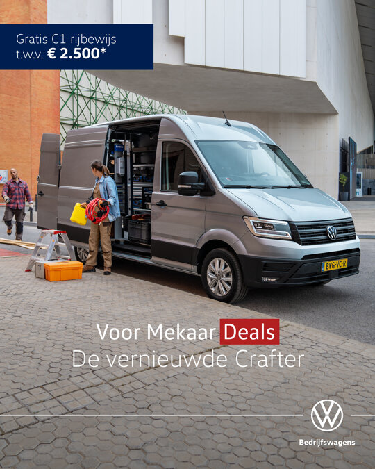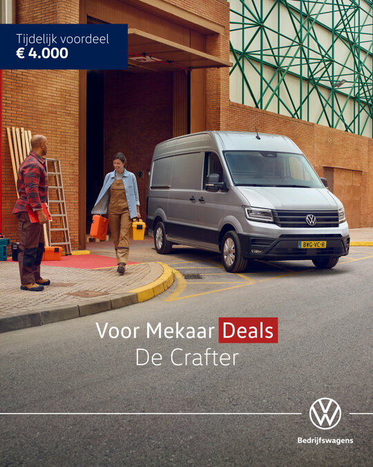 Je rijdt de vernieuwde Crafter nu extra voordelig tijdens onze Voor Mekaar Deals, want je profiteert van € 4.000 tijdelijk voordeel op alle uitvoeringen van de vernieuwde Crafter tot 3,5t. En kies je voor de vernieuwde Crafter, dan kun je daarnaast altijd rekenen op onze uitstekende service, zodat jij je volledig kunt richten op wat écht belangrijk is voor jou. Bekijk snel deze Voor Mekaar Deal.